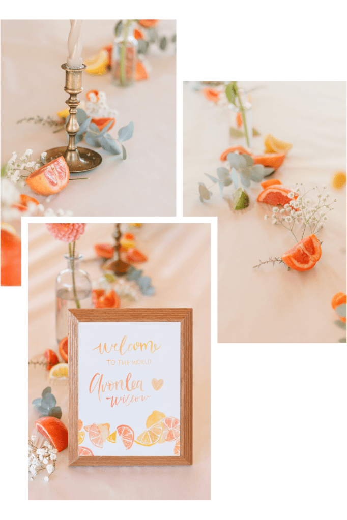 We had Avonlea’s baby shower after she was born because we couldn’t fit it in before. It was a really sweet time and not unbearably hot. ☺️ Decorating was so much fun! I used some grapefruits that were still on the trees from the winter; bought the dahlias, baby’s breath, and the other citrus. Enjoy some photos from the day.