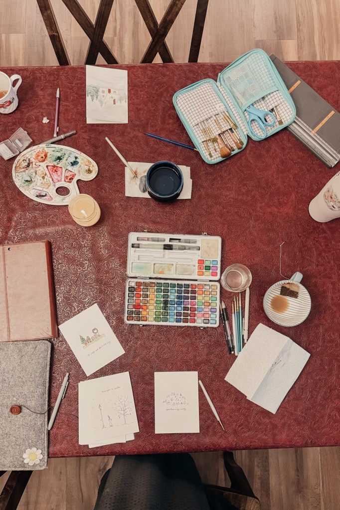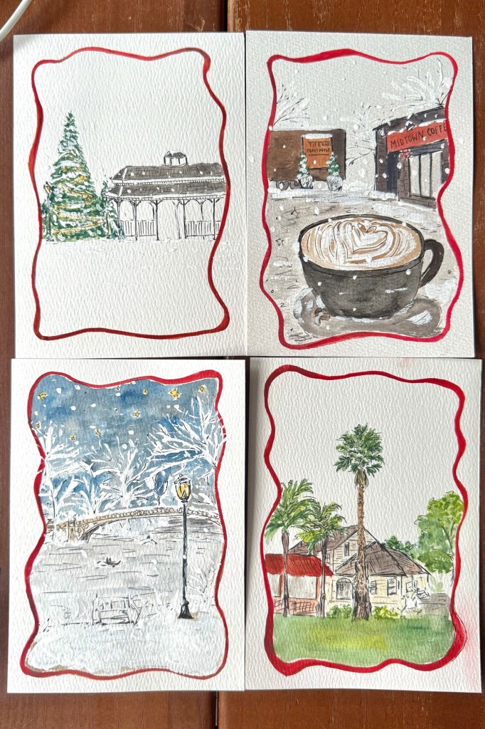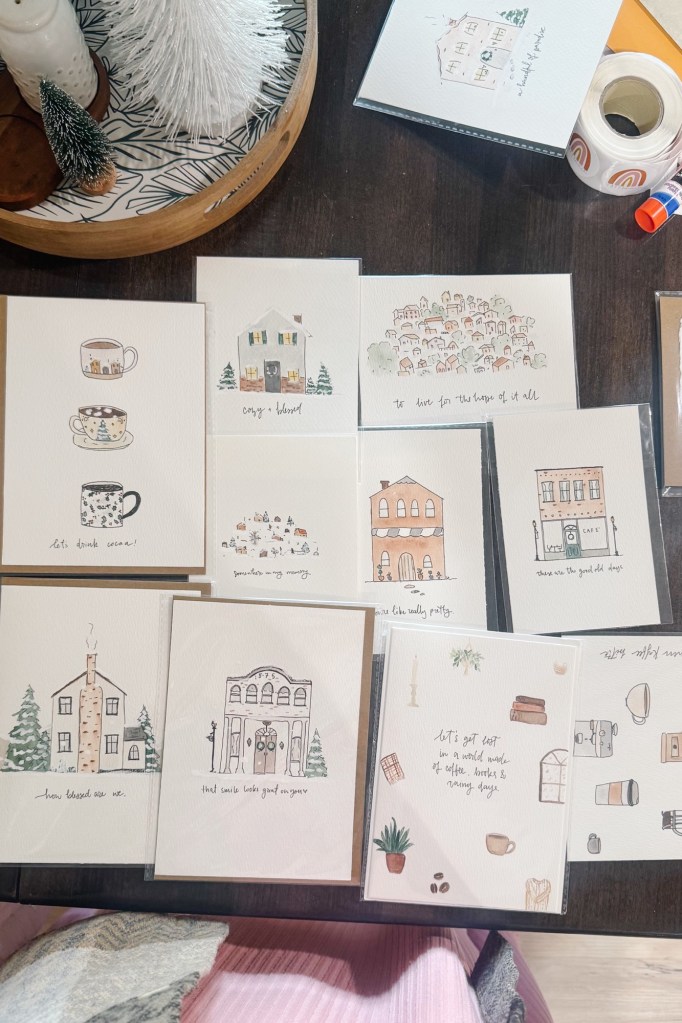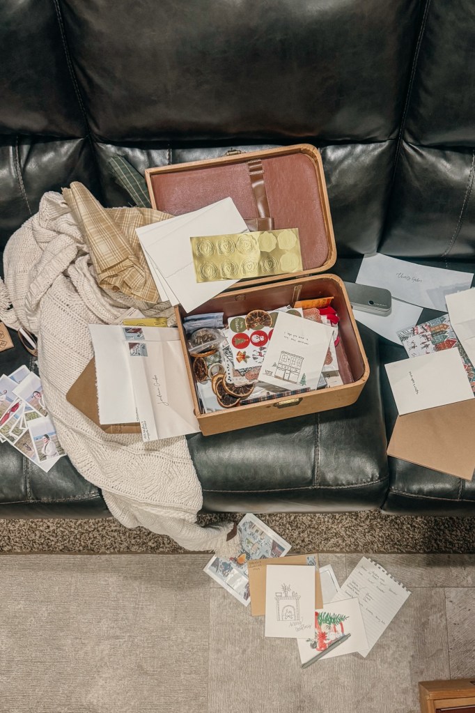 writing holiday cards.